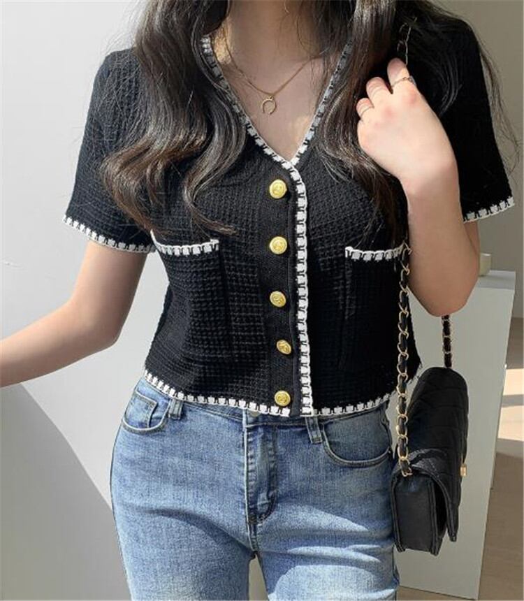 カラーマッチング 半袖 薄い アイスシルク ニット 短いスタイル コート ゆったりする