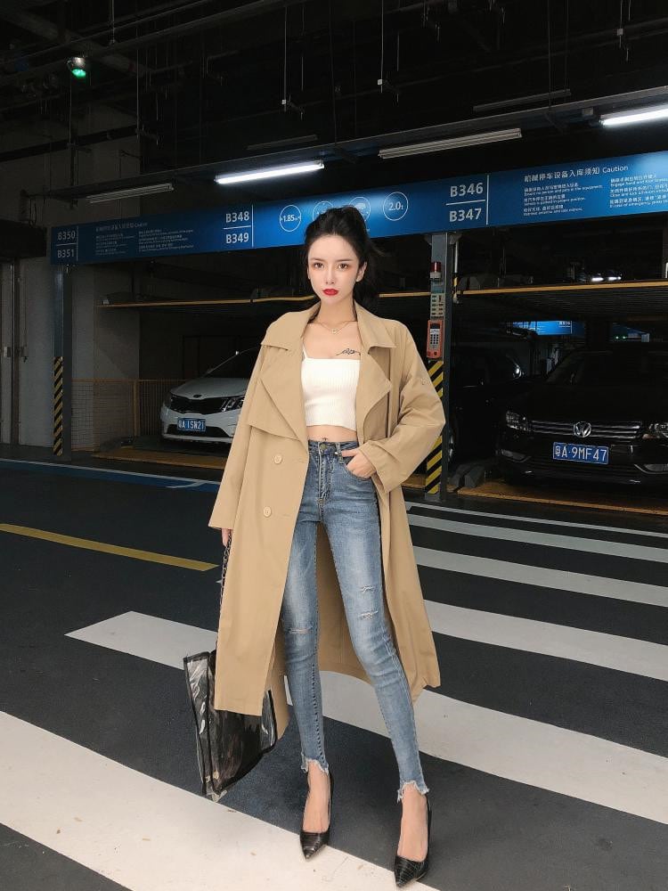 韓国ファッション トレンチコート オシャレ シンプル 秋 新 気質 中・長セクション