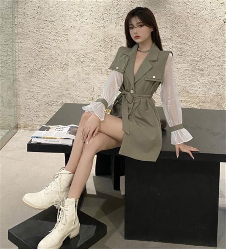 INSスタイル カジュアル 縫付 トレンチコート 長袖 新品 秋 バンディング カラーマッチング