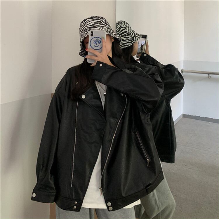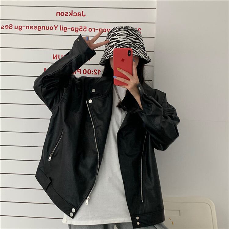 韓国ファッション 秋 pu服 オートバイ服 長袖 ジッパー ラペル コート 上品映え 快適である 個性