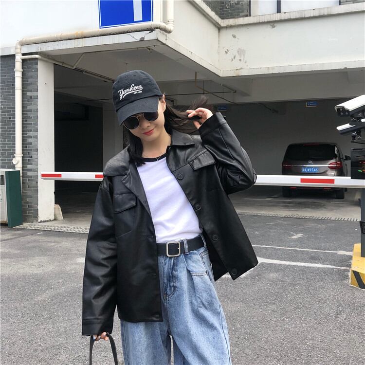 早い者勝ち 秋 韓国版 コート PUレザー 長袖 単体ボタン ラペル 短いスタイル 簡約 おしゃれな 快適である
