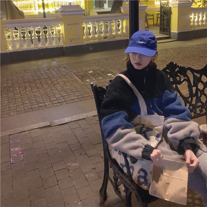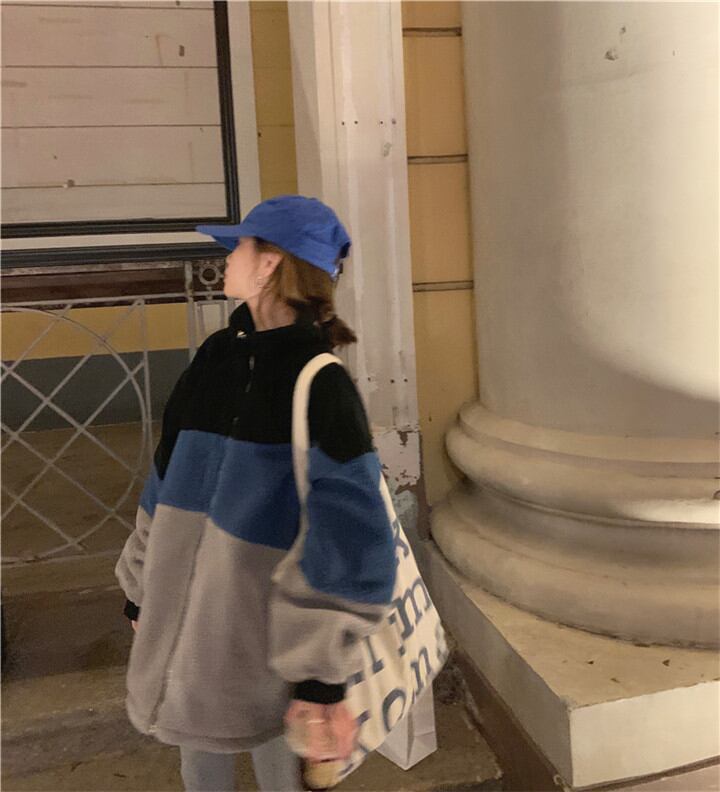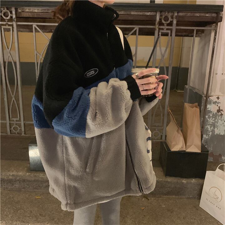 子羊の毛 コート ゆったりする ファッション スタンドカラー ジッパー トップス 暖かい 厚手 縫付