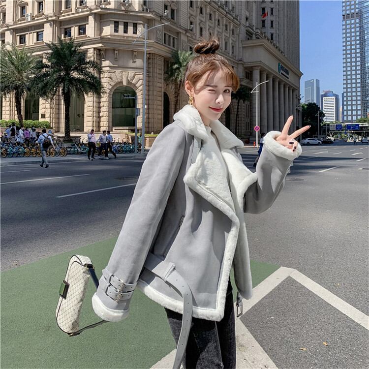長く着れる、シンプルな1枚 韓国ファッション ファー コート短いスタイル 裏起毛 厚手 コットン