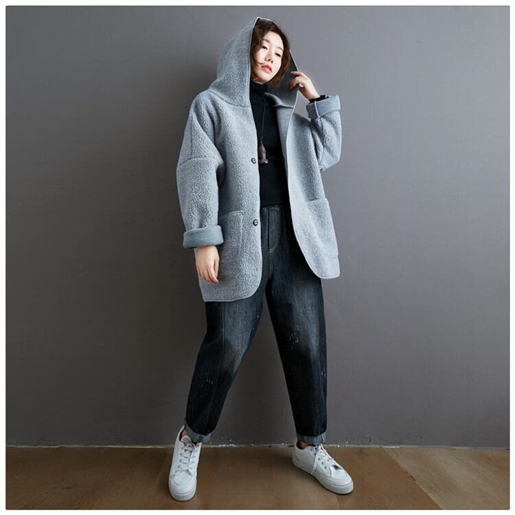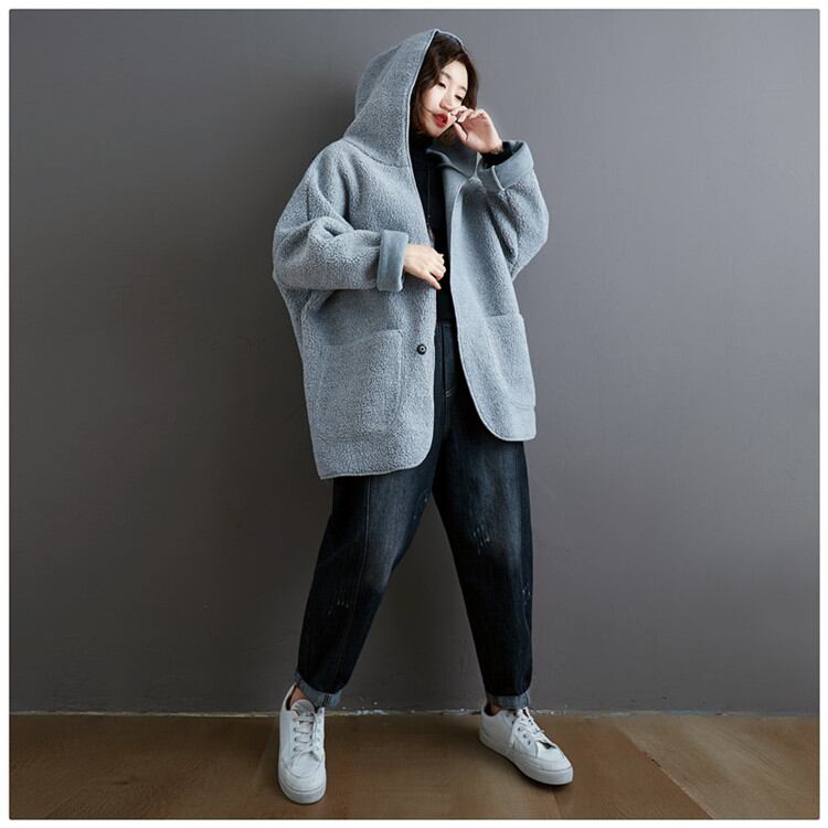早い者勝ちコート中・長セクション大きいサイズフード付きコートカーディガン