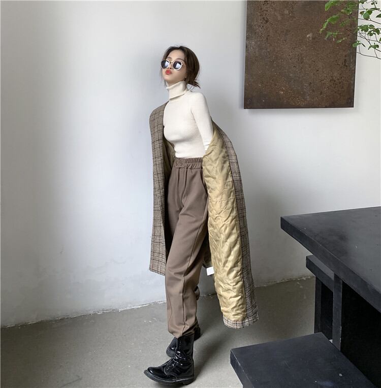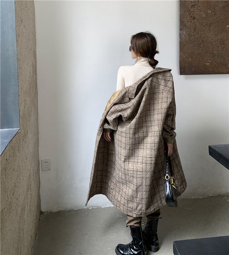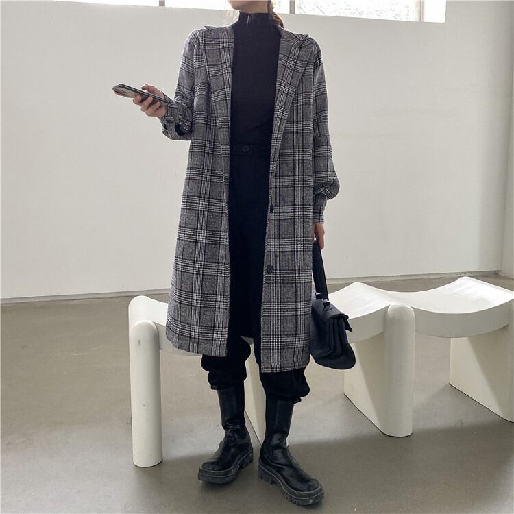 カジュアル 気質 長袖 暖かい ウィンター 大人気 中・長セクション ラペル ゆったりする レトロ チェック柄