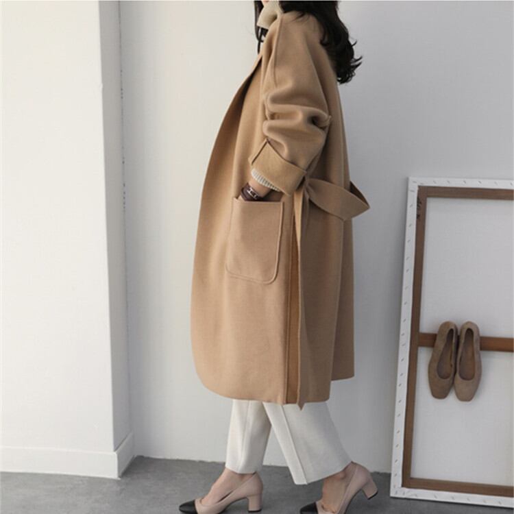 カジュアル 気質 長袖 暖かい ウィンター 大人気 中・長セクション ラペル ゆったりする ベルト付き