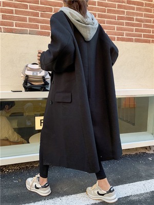 チェスターコート ロングセクション フード付き フェイク2ピース スリムフィット 裏起毛 暖かい 厚手