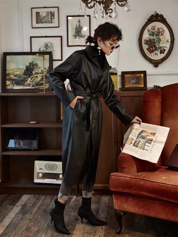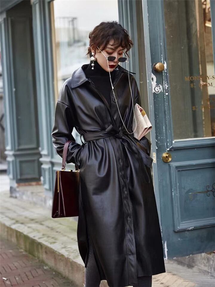 ロングセクション レザー ゆったりする スリム ウエスト トレンチコート カジュアル 秋 新