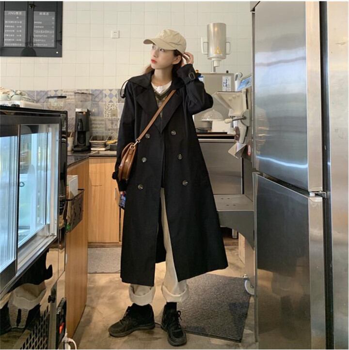 中・長セクション トレンチコートレトロ ダブルボタン コート カジュアル