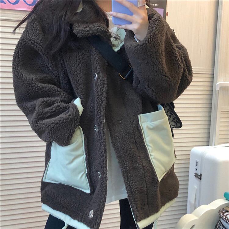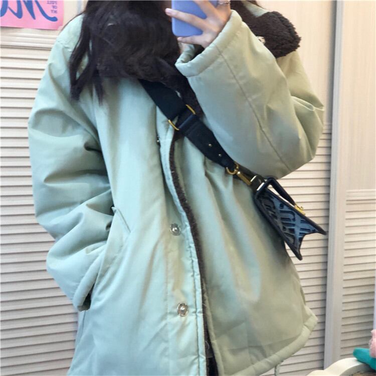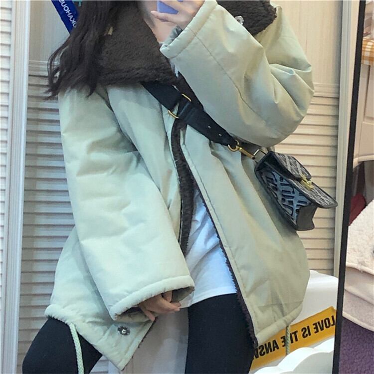 韓国ファッション スタンドカラー ラムヘア 両面 韓国版 コットンジャケット