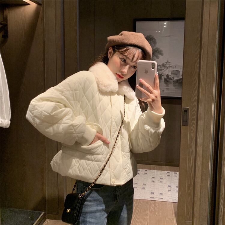 通勤する 毛皮の襟 コットンウェア コート カジュアル デザインセンス