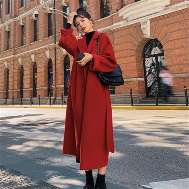 中・長セクション ラペル ゆったりする カジュアル 気質 スリム 長袖 暖かい ウィンター ベルト付き 大人気