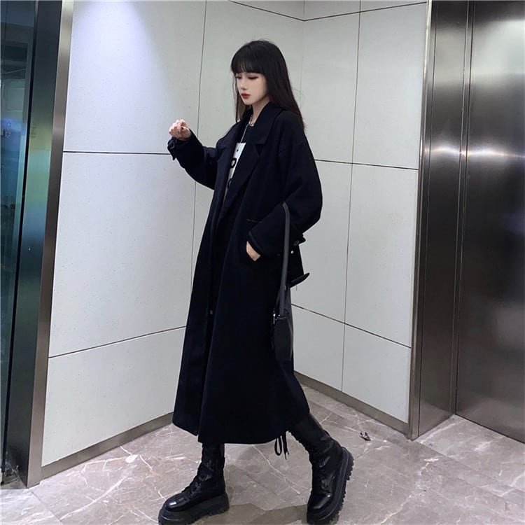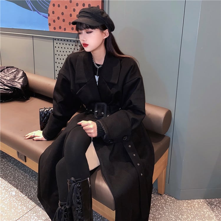 韓国ファッション ベルト付き レトロ コート 気質 コート 冬