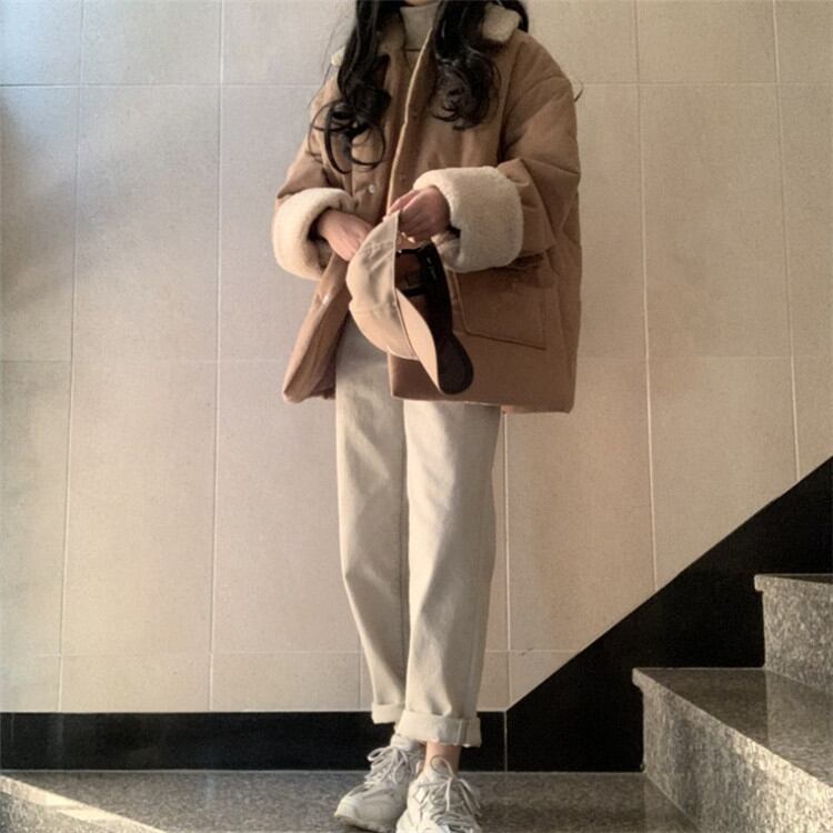 INSスタイル トレンド ゆったりする 厚みをつける 単体ボタン スタンドカラー