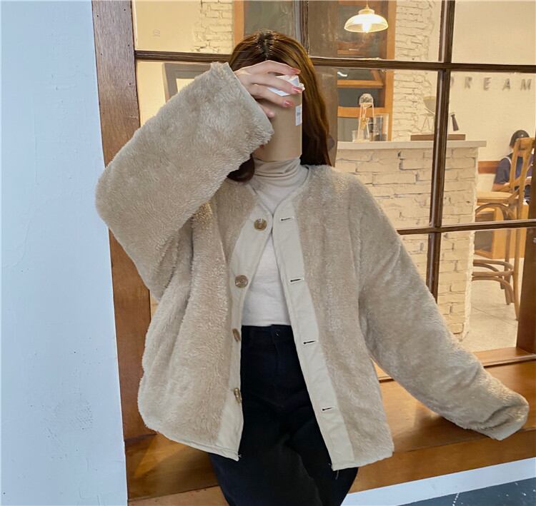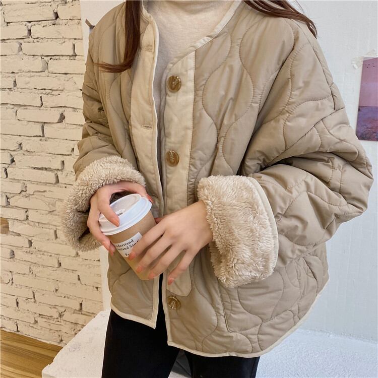 通勤する 新品 ラウンドネック 単体ボタン 子羊の毛 綿服 両面の着用 厚い 暖かい レトロ 気質