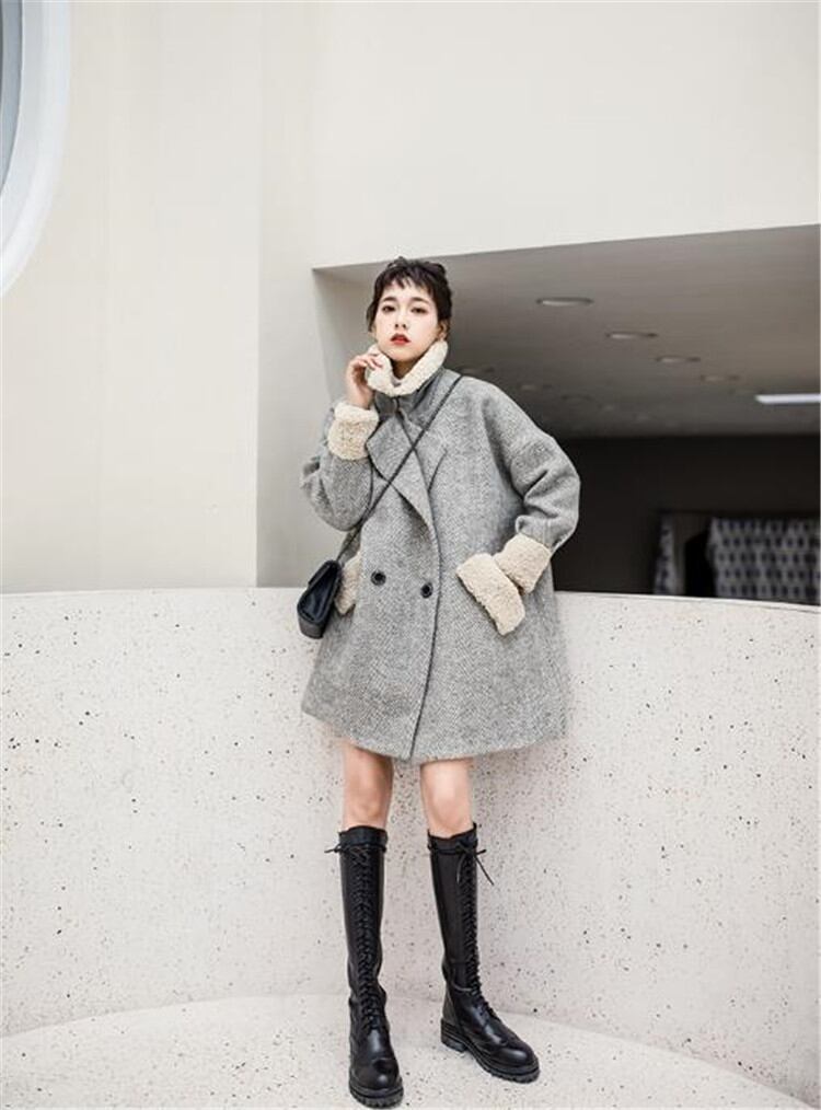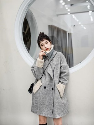 快適さが素晴らしいです 中・長セクション 厚手 コート 子羊の毛 毛皮の襟