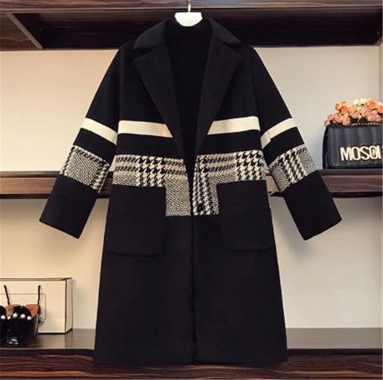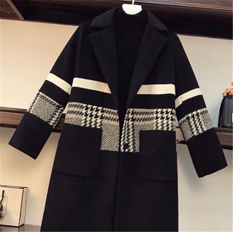 韓国版 チェスターコート厚手 カーディガン減齢 中・長セクション 大きいサイズ 格子縞 縫付