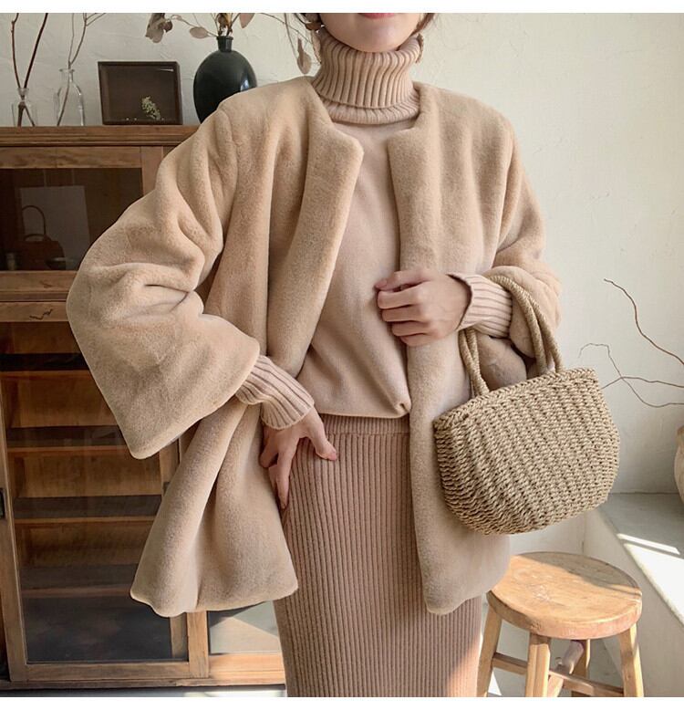 フェイクファー ジャケット 暖かい ジャケット まねるウサギの毛 ファー コート 大人気