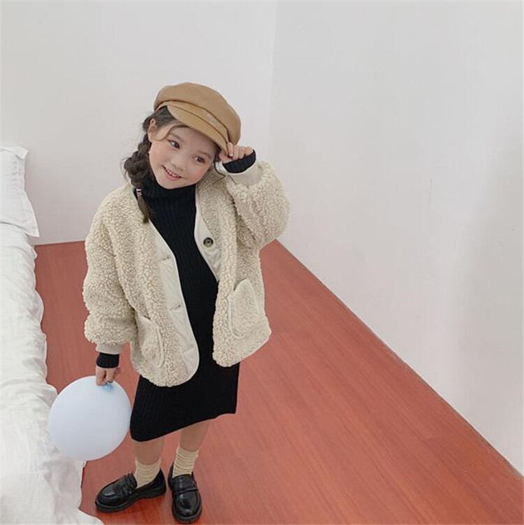 秋冬 韓国ファッション 母と娘 親子服 女の子 子羊の毛 裏起毛 厚手 チェスターコート 親子兼用