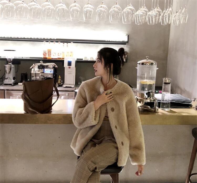 元気少女の衣装 韓国ファッション シープシャーリングコート 短いスタイル 子羊の毛 チェスターコート
