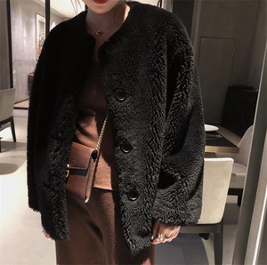 韓国ファッション シープシャーリングコート 短いスタイル 子羊の毛 チェスターコート