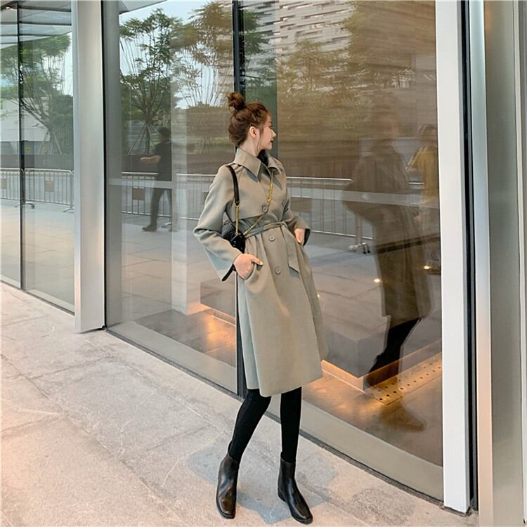 韓国ファッション ラペル ダブルボタン チェスターコート 中・長セクション