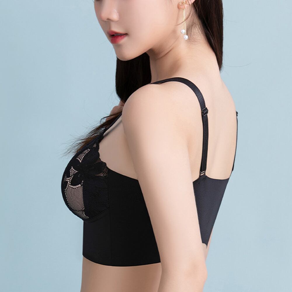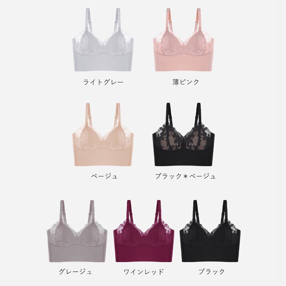 レースブラジャー 単品 女性 ワイヤレス ナイトブラ ブラトップ 盛れる Vネック ランジェリー 谷間 7色
