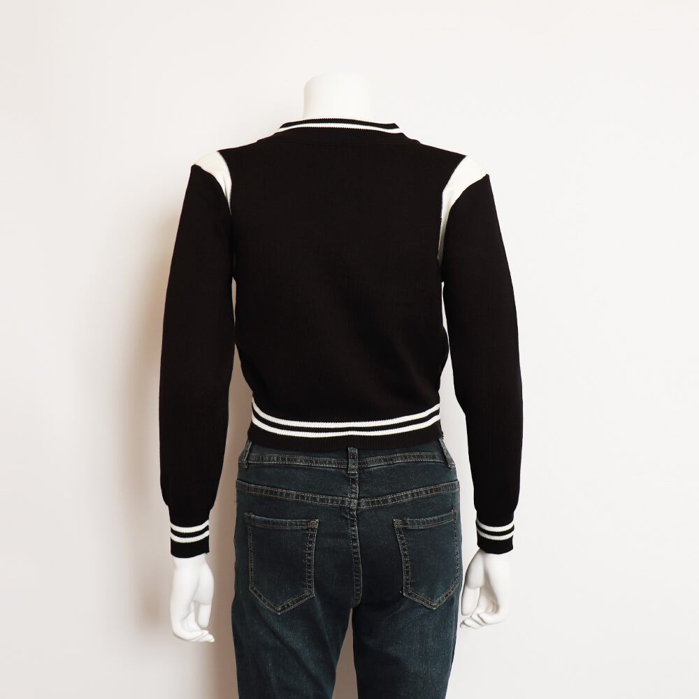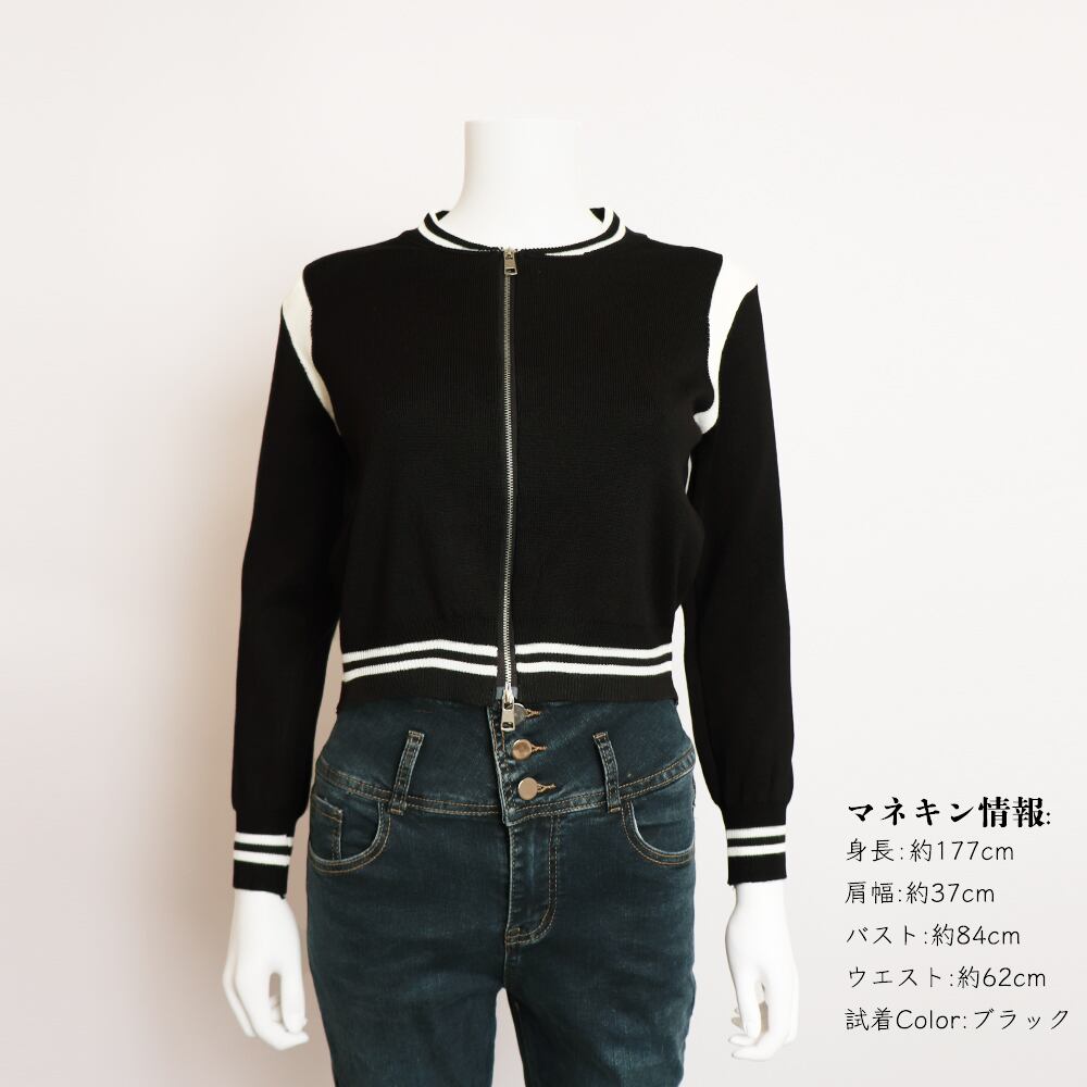 ショート丈 スタジャン クロップド丈 ブルゾン ニットアウター セーター おしゃれ 春秋冬 配色バイカラー カジュアル