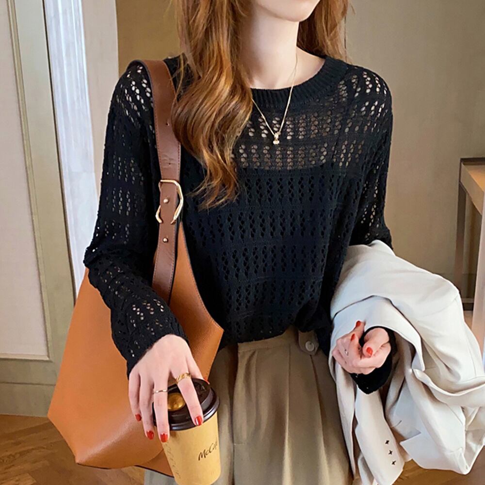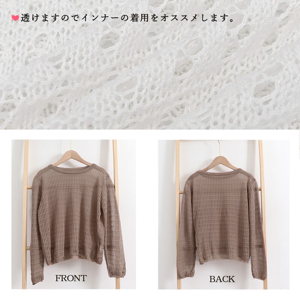 ニットトップス 透け感 プルオーバー クロシェ編み ラウンドネックニット 大人カジュアル 着回しニット 女性 フェミニン
