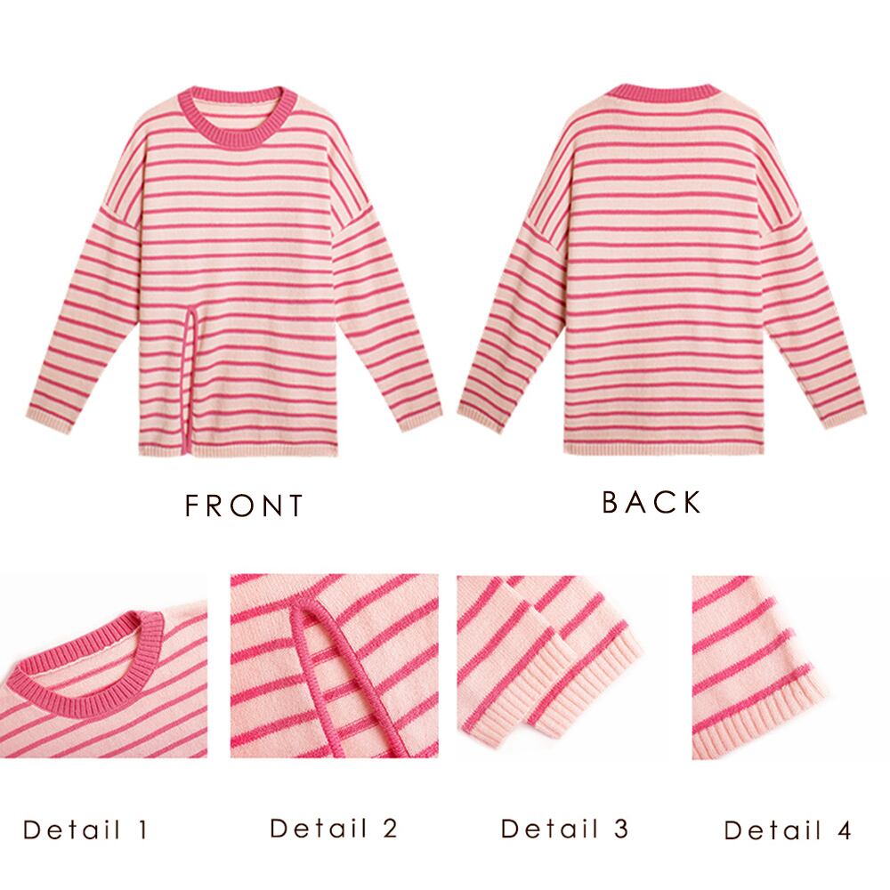 レディース ボーダー柄 ニットセーター カジュアル クルーネック ニットウェア ドロップショルダー 重ね着ニットソー