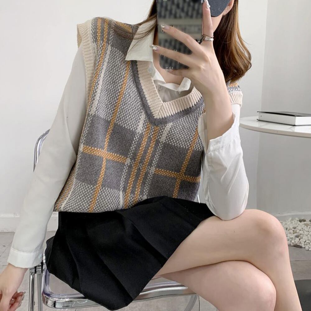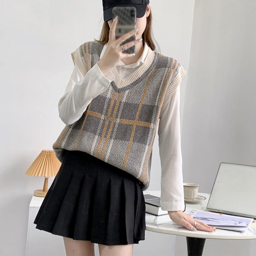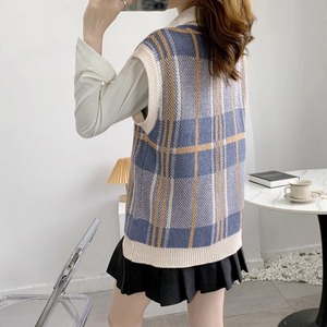 レトロ ノースリーブニット 柄ニットカットソー 重ね着 カジュアルシルエット ニットチョッキ 春秋冬 ニットウェア 韓国