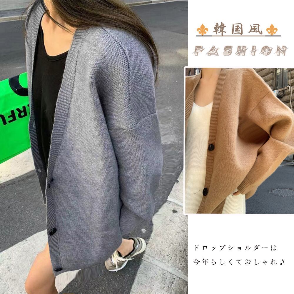 vネック ニットアウター ドロップショルダー 韓国カジュアル 羽織り コーディガン 大人コーデ 楽ちんアウター黒 着やせ