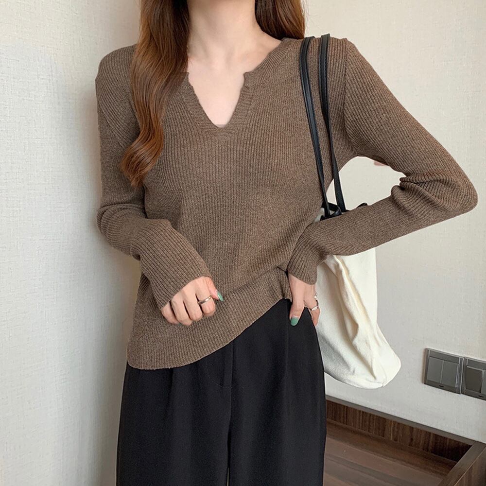 春秋冬ニットソー インナートップス vネック長袖ニット