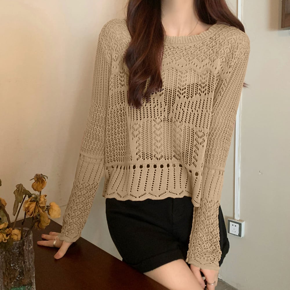1枚取り入れるだけでおしゃれ着こなしが楽しめる透かし編みニットトップス