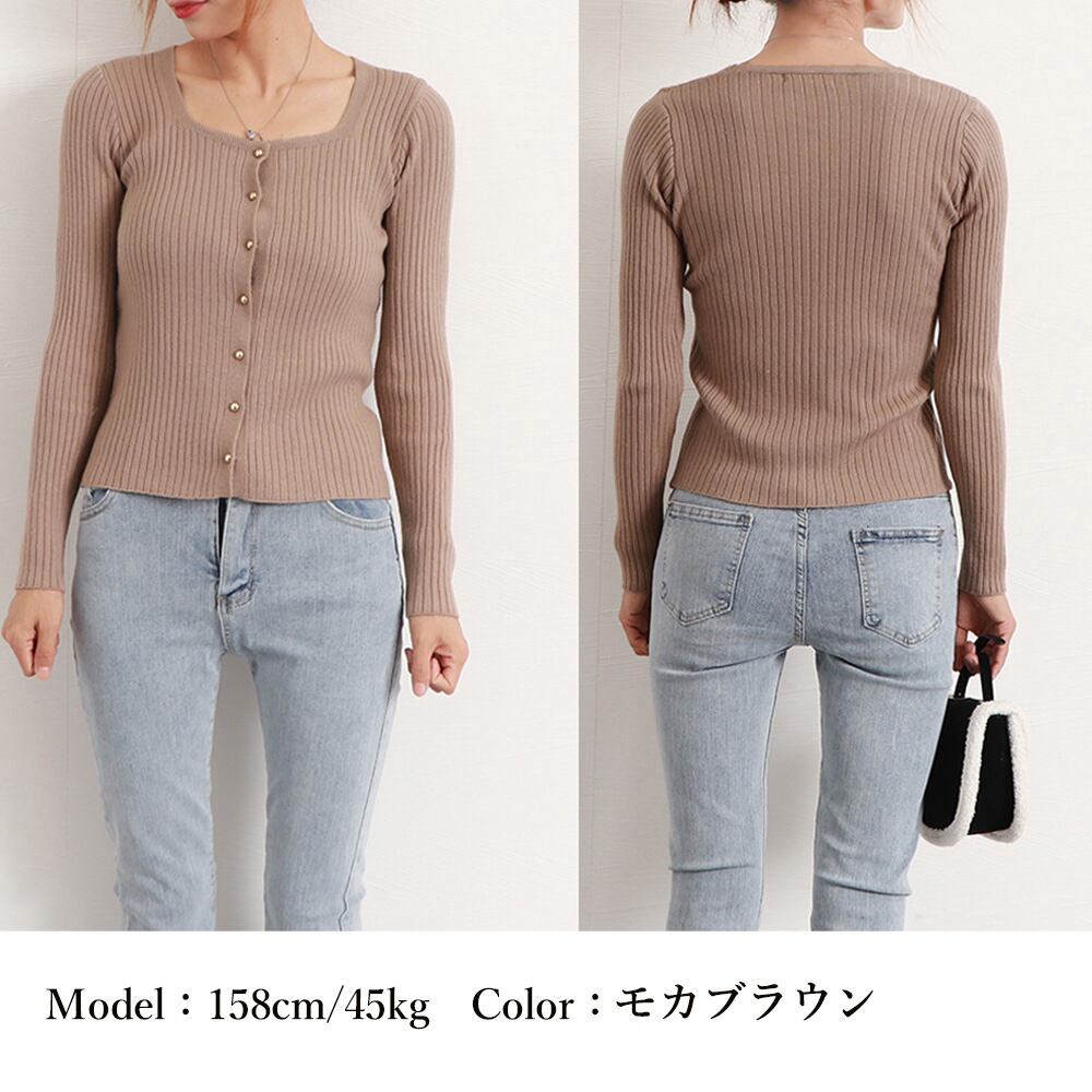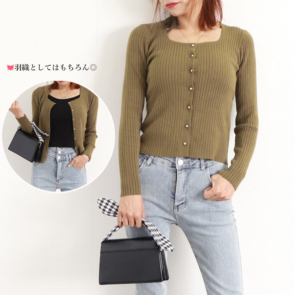 リブ編み ニットセーター スクエアネック 韓国風 お洒落ニット クロップド 長袖 大人可愛い 秋服 セクシー ストレッチ