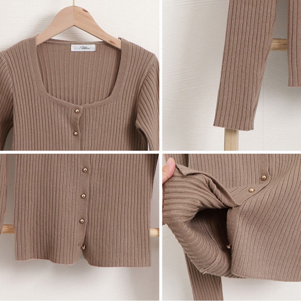 タイトニット前開き ニットウェアレトロ ニットトップス羽織