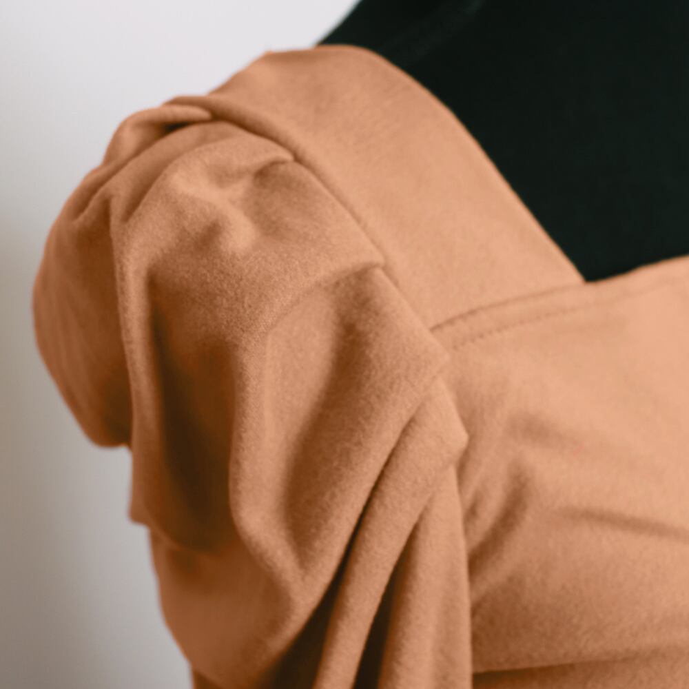 スクエアネックで首元すっきり、ネックラインをきれいに魅せます。