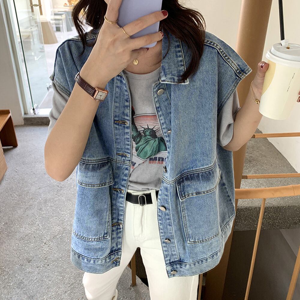 デニムチョッキ韓国 デニム羽織ゆったり ジーンスベスト大人