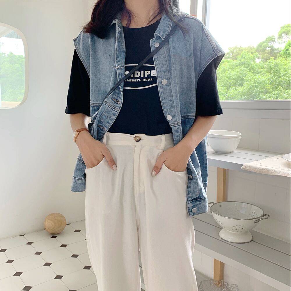 ゆったりとしたシルエット、大人のこなれ感を演出するデニムベスト