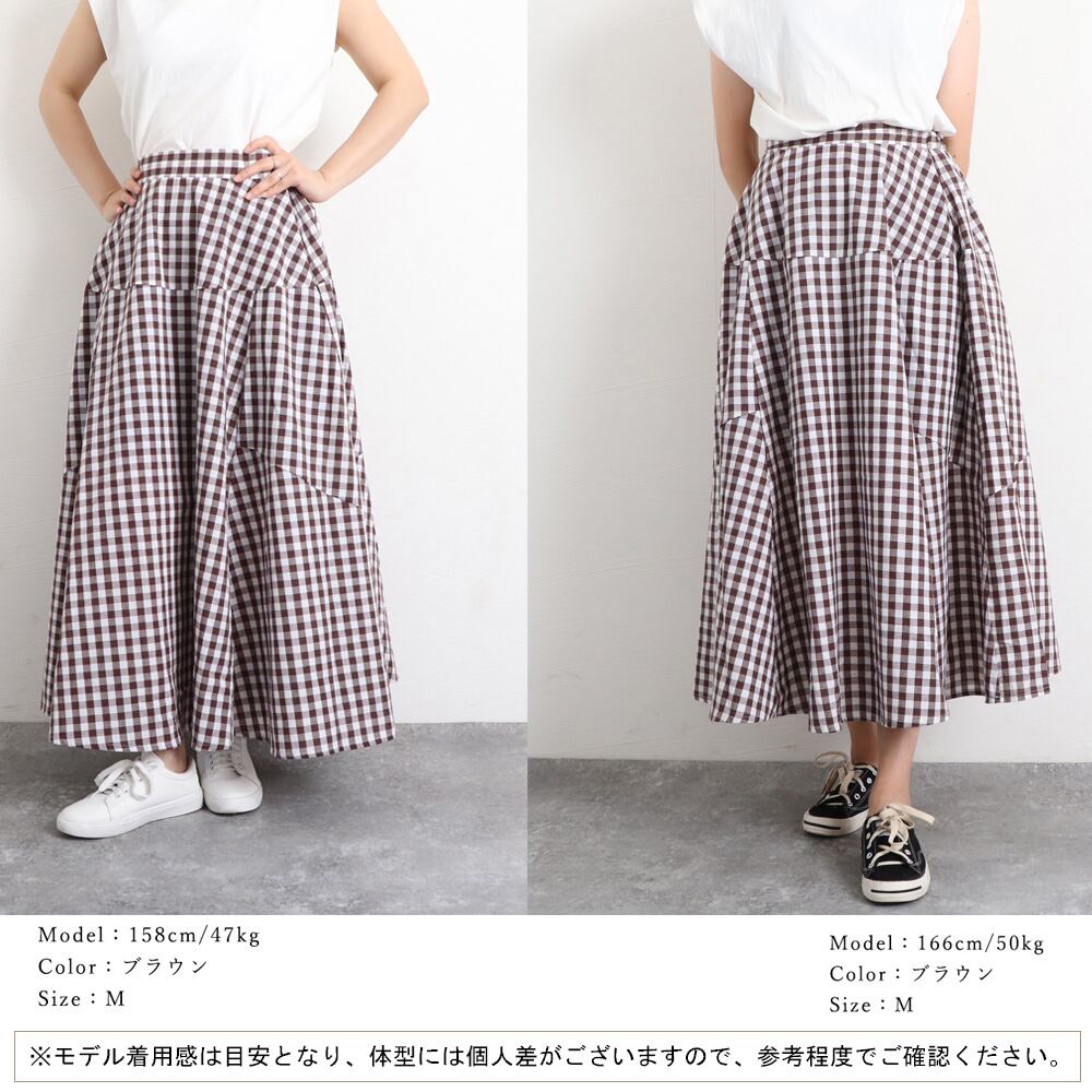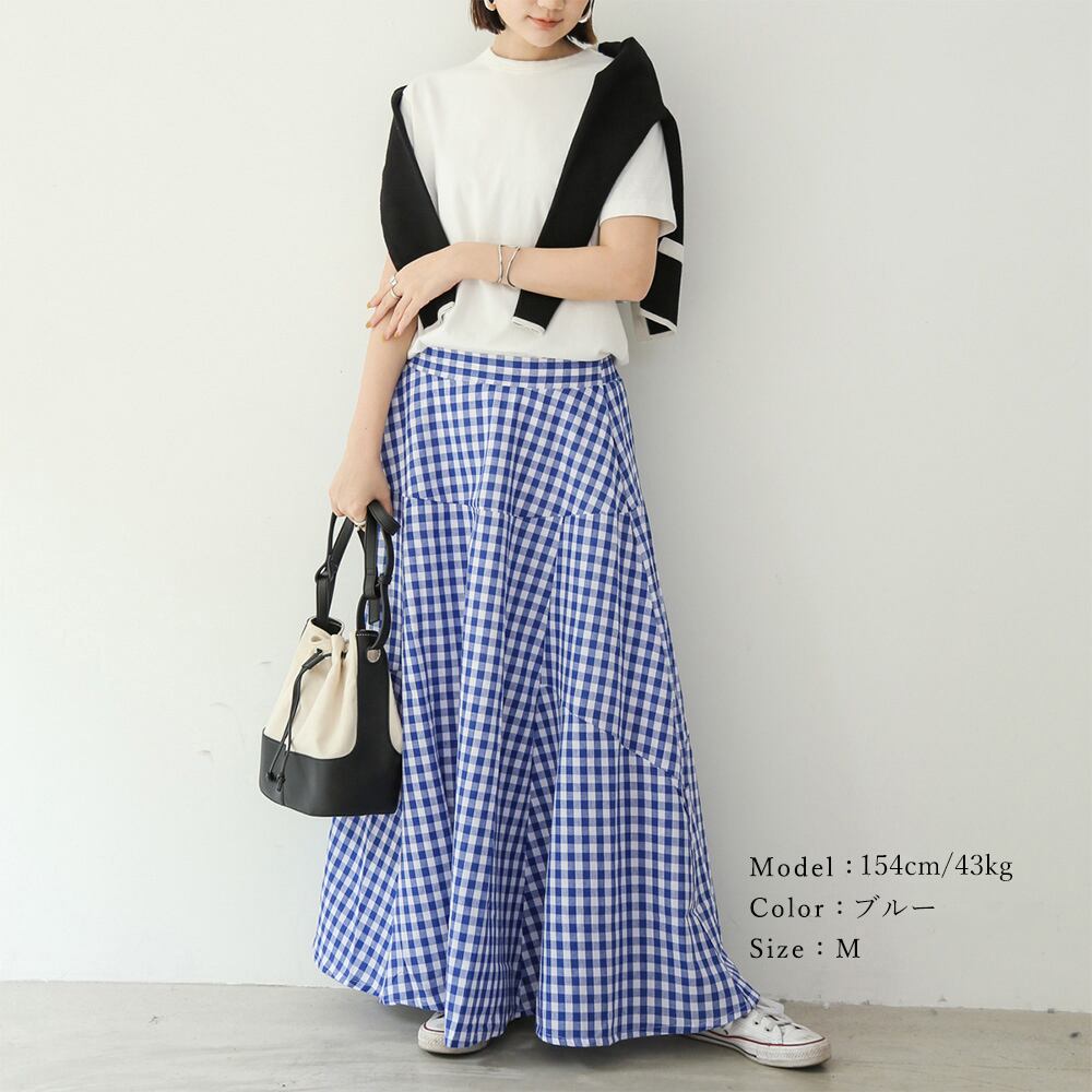 爽やかなギンガムチェックが目を惹くマキシ丈スカート