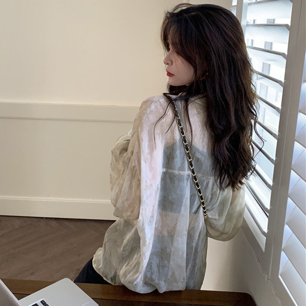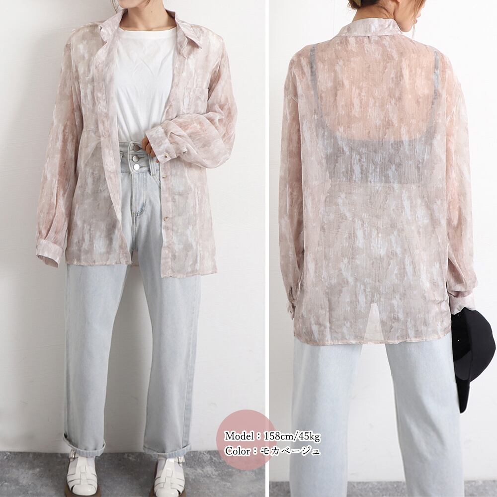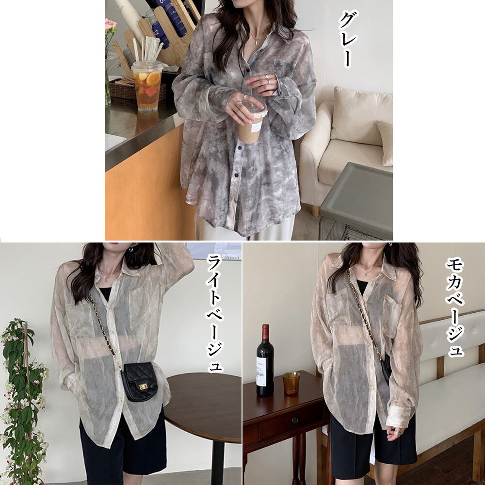 韓国風シャツブラウス レディース ドロップショルダー ニュアンス柄トップス カーディガン 大人カジュアル 長袖 UV対策