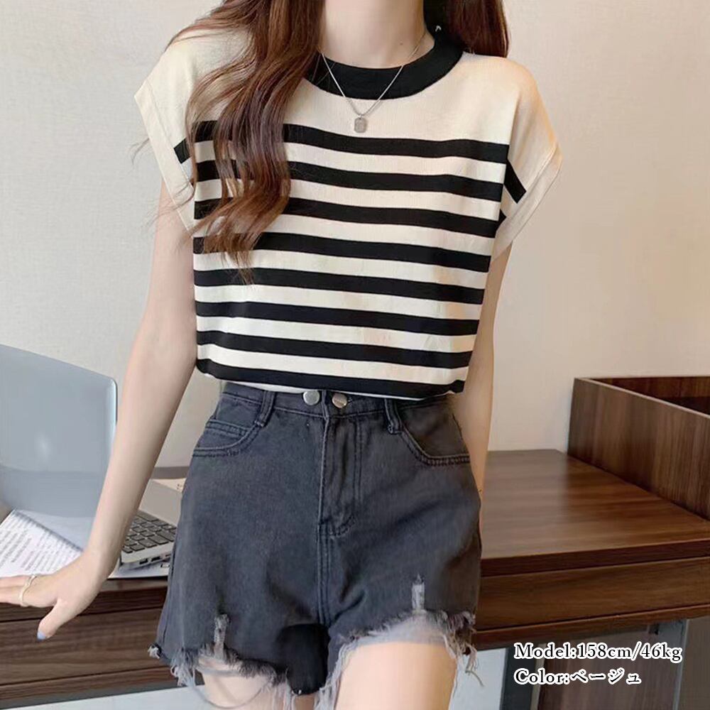 旬のフレンチマリンルックにピッタリなボーダー柄のサマーニット