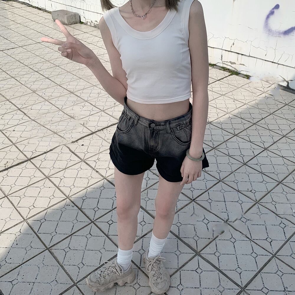 レディース 可愛い カラー デニム短パン ロールアップ おしゃれ ミニデニム 春秋夏 ハイウエスト韓国ジーパン Aライン