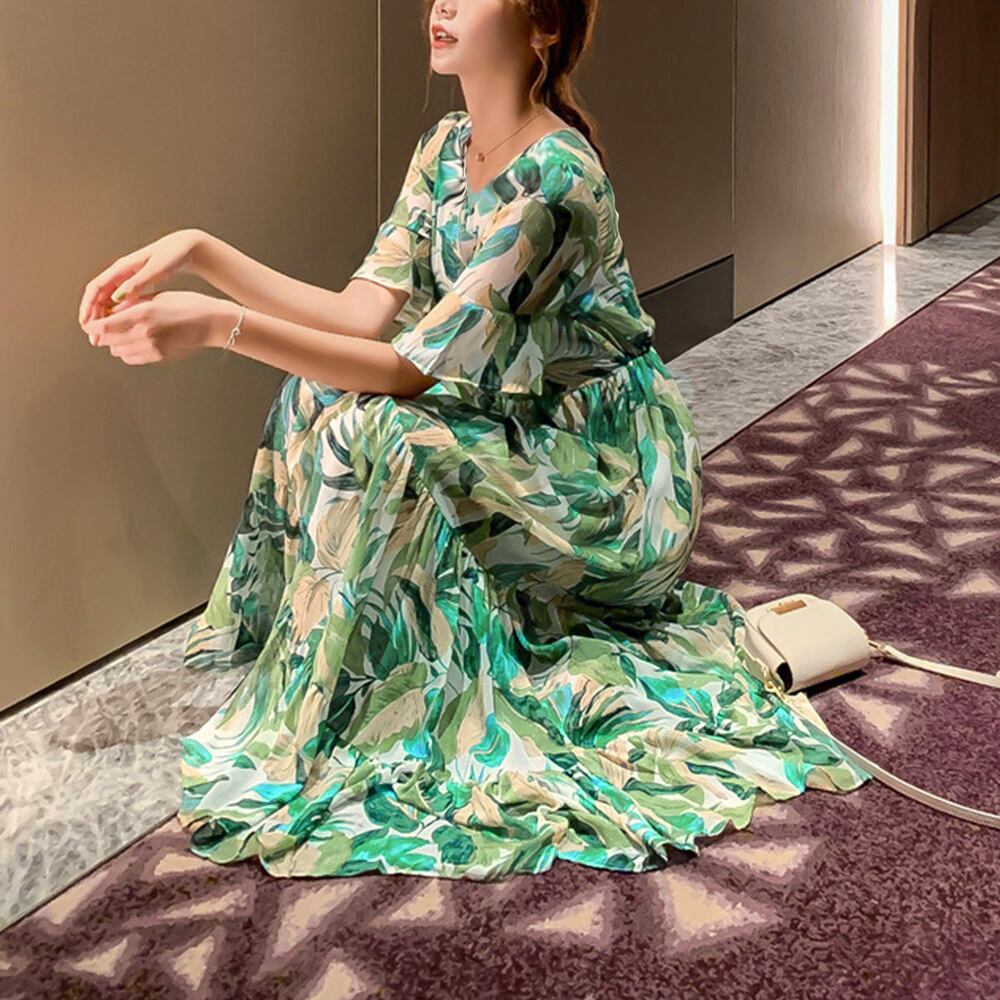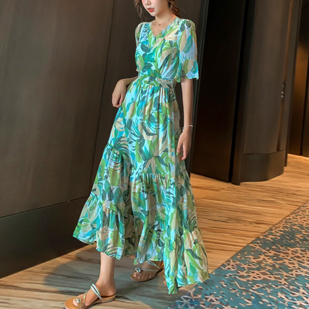 花柄 ティアードワンピース春夏 Vネック