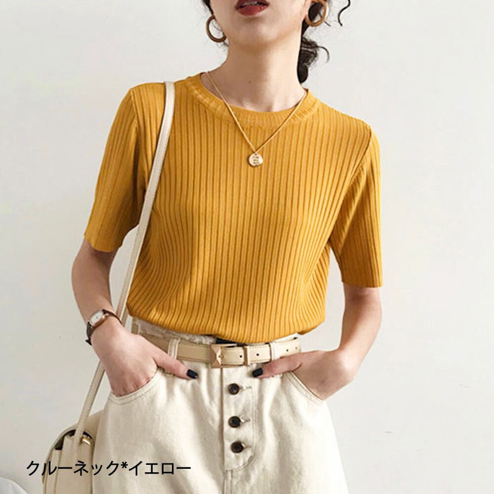 5分袖リブニット夏服トップス レディース