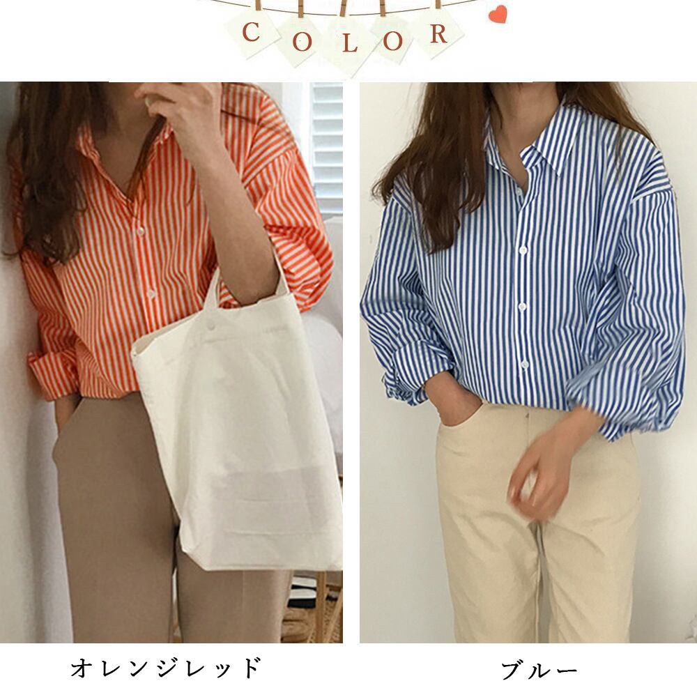 韓国ファッション ゆるシャツ大人女性 縞模様シャツ羽織り
