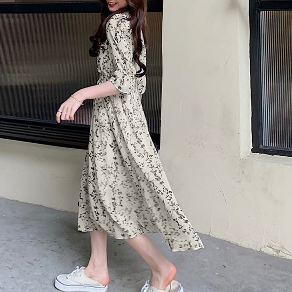 レディース 上品 Vネック ロングワンピース 半袖 リゾートワンピ レジャー旅行 大人サマーワンピ ウエストマーク韓国風
