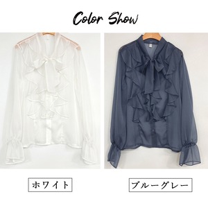 フリルブラウス 長袖 シアートップス上品