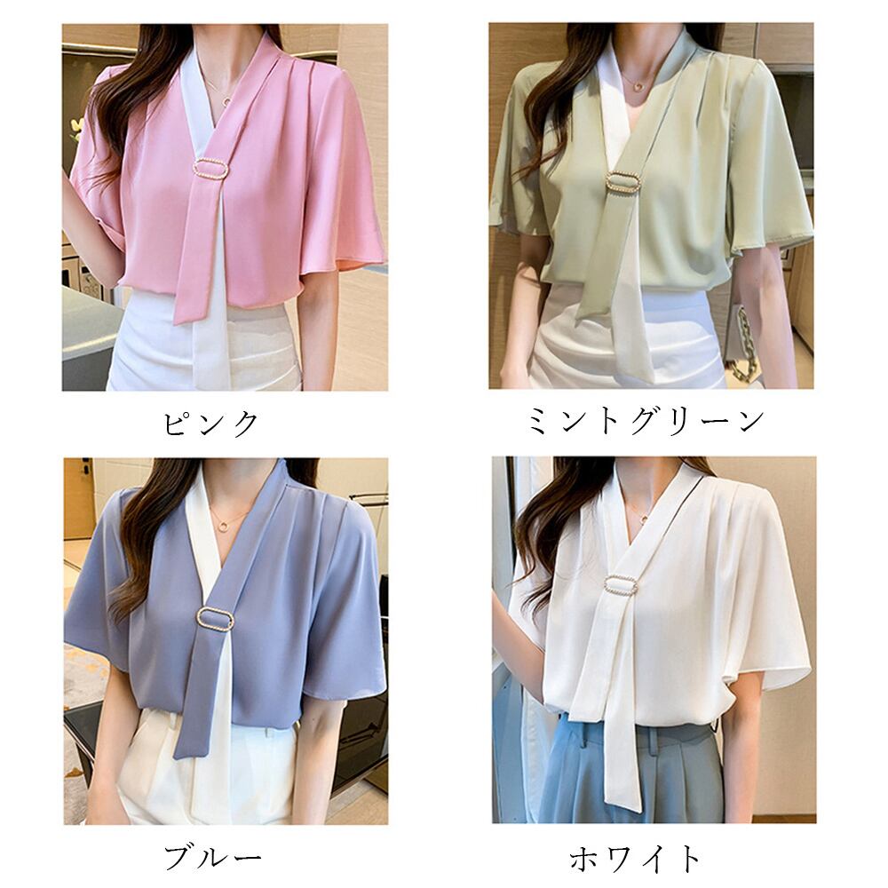 きれいめブラウス 夏服トップス韓国風 リボンブラウス上品