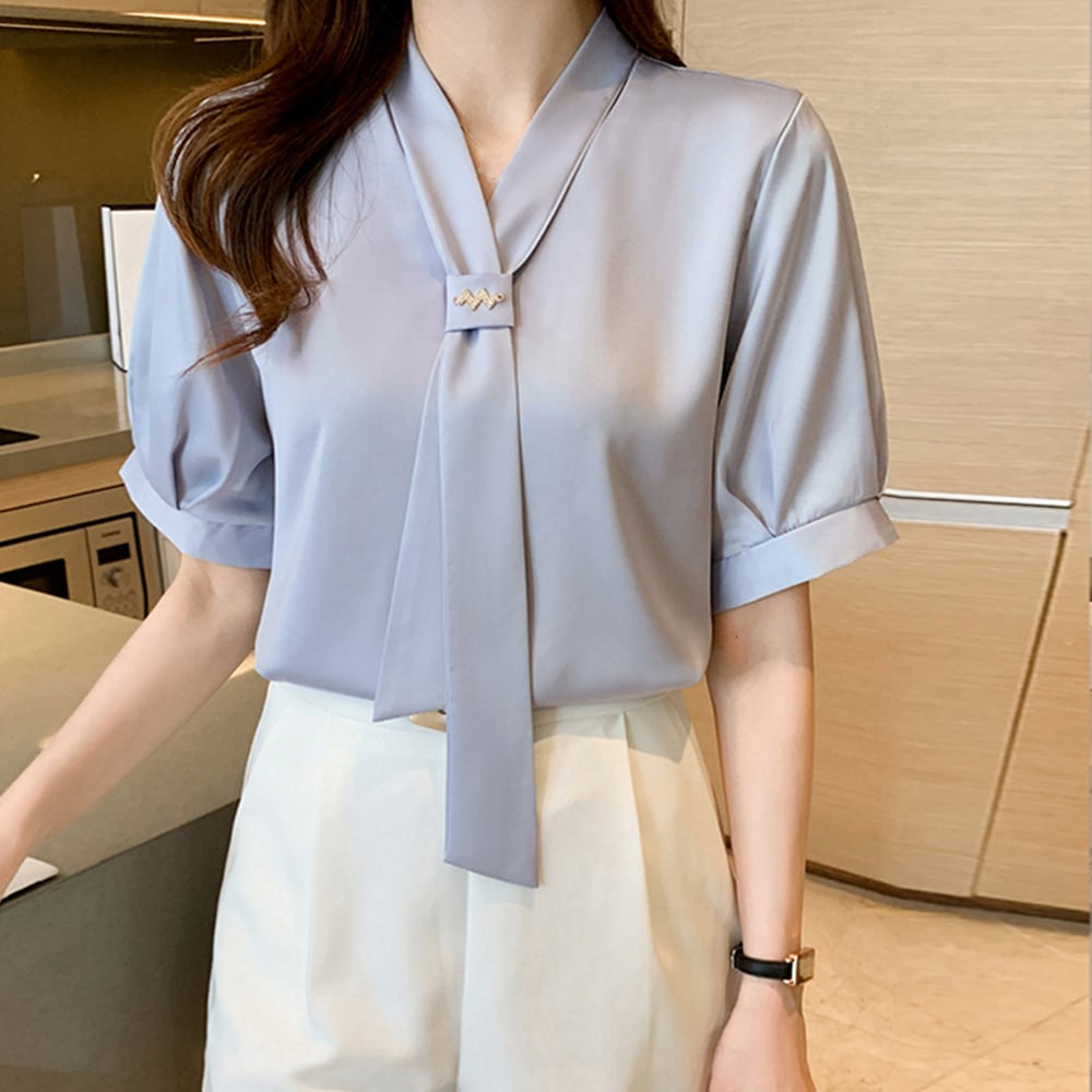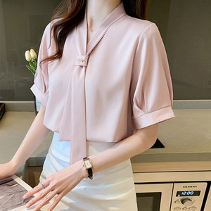 オフィス ブラウス 夏服トップス韓国風 リボンブラウス上品